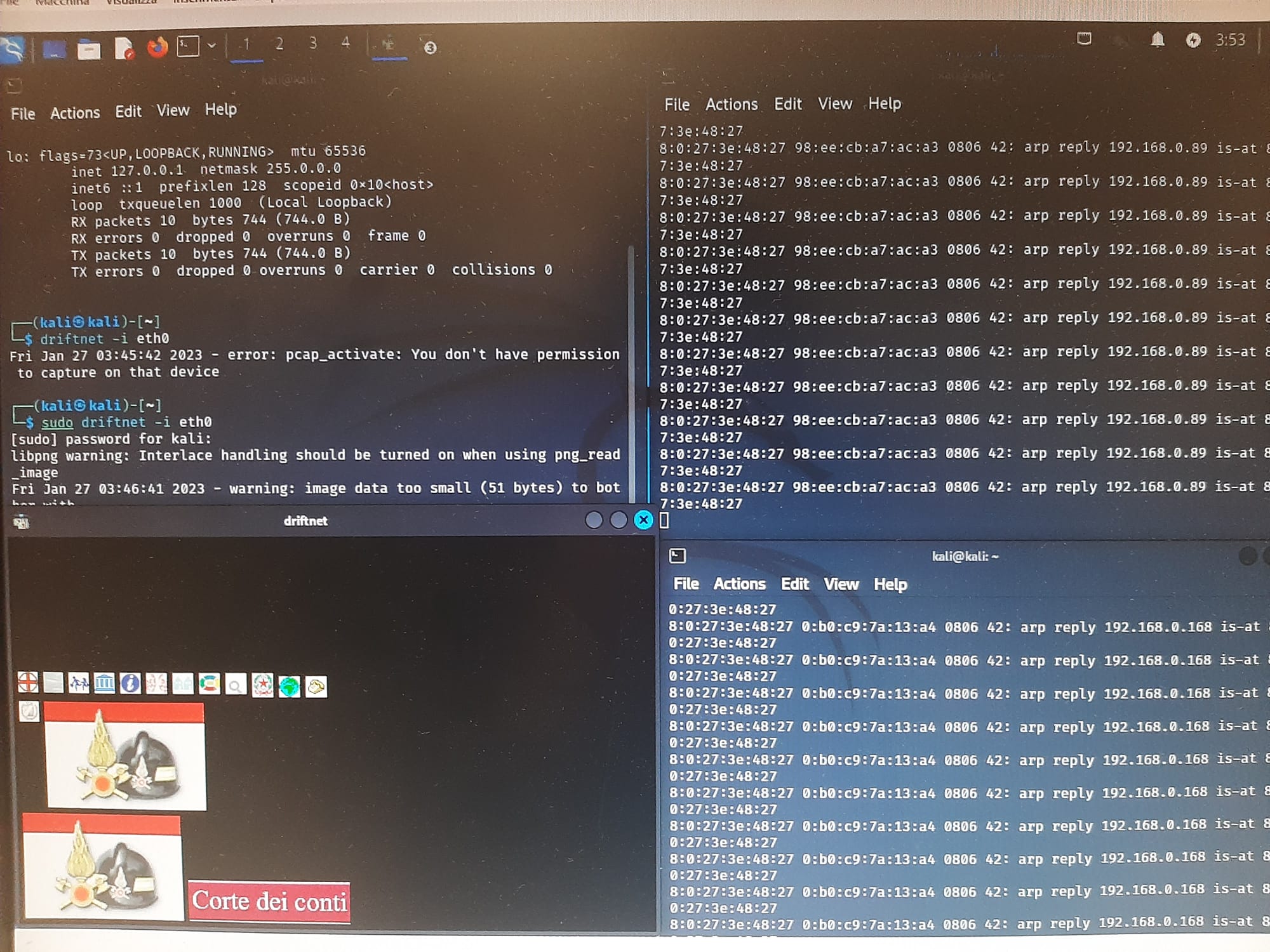 It was possible to pretend to be the recipient PC, so we managed to receive all the traffic, like the site in http so we received some information such as images